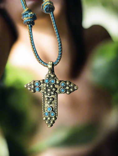 Nuestras gargantillas nos hacen viajar a distintos continentes como África o Asia a través de las piezas que las componen, hechas a mano a partir de materiales obtenidos de la naturaleza y sostenibles, y además bañadas en oro mate, para dar un toque más sofisticado a nuestras joyas.