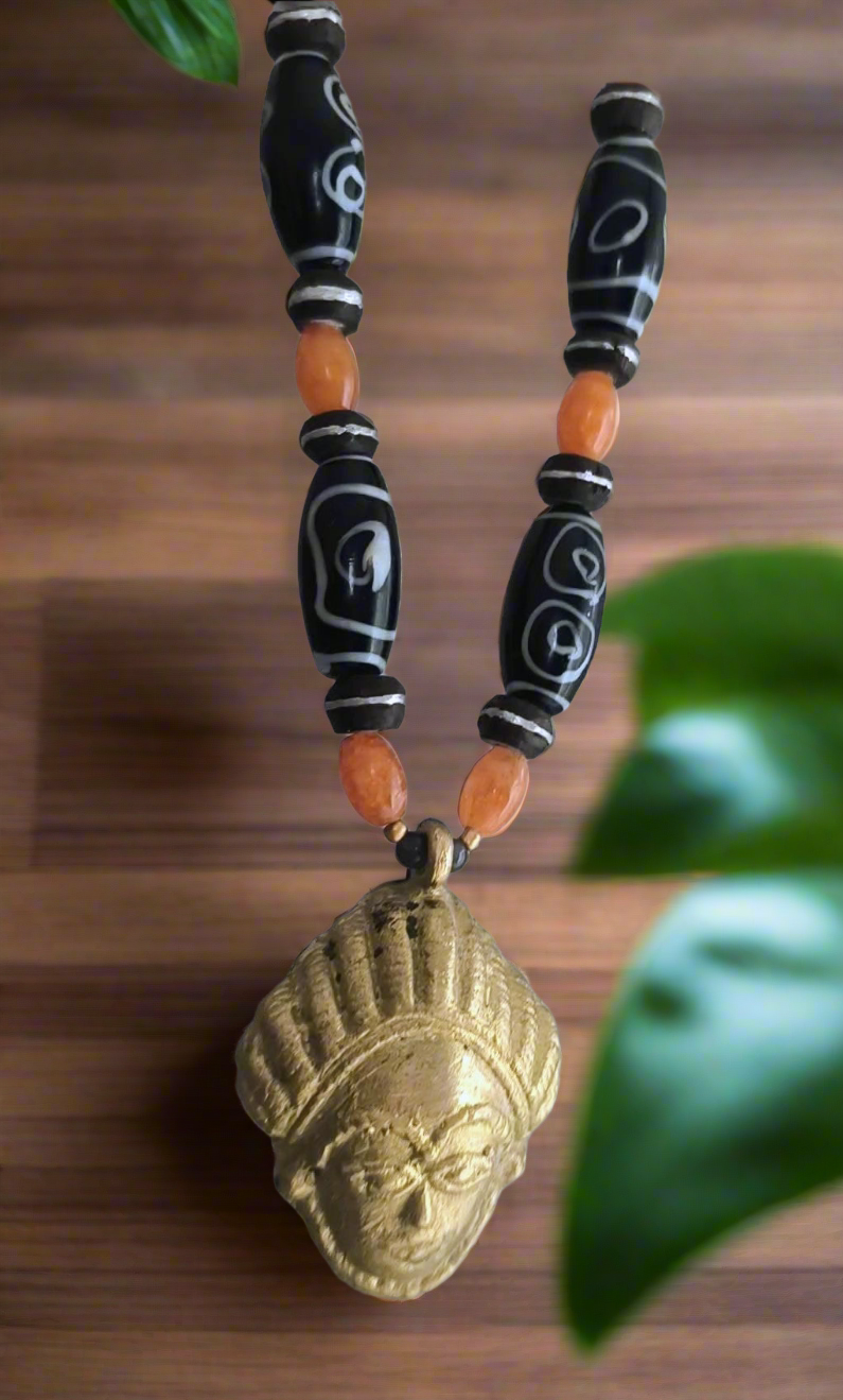 Carita de bronce, con ágatas balinesas. Gargantilla única etnica